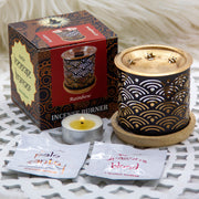 How to use? Place a brick on the copper plate. Light a tealight candle & place it below the plate in the allocated slot. The fragrant smoke, saturated with rich aroma will gradually rise and spread through the room. Fragrant smoke continues for approx 45 min. Allow it to cool. Clean the AromaFume burner after every use. Discard the used incense brick.