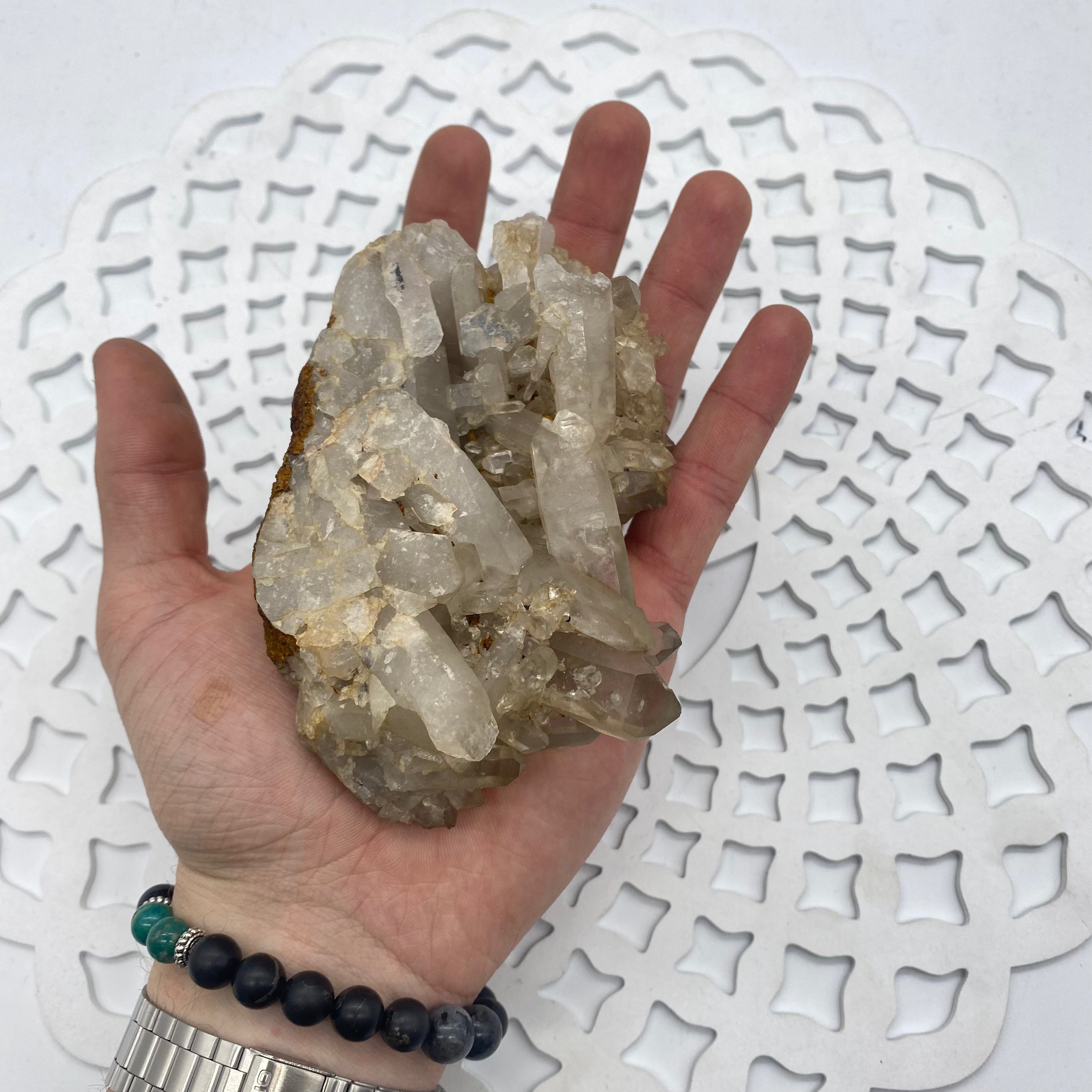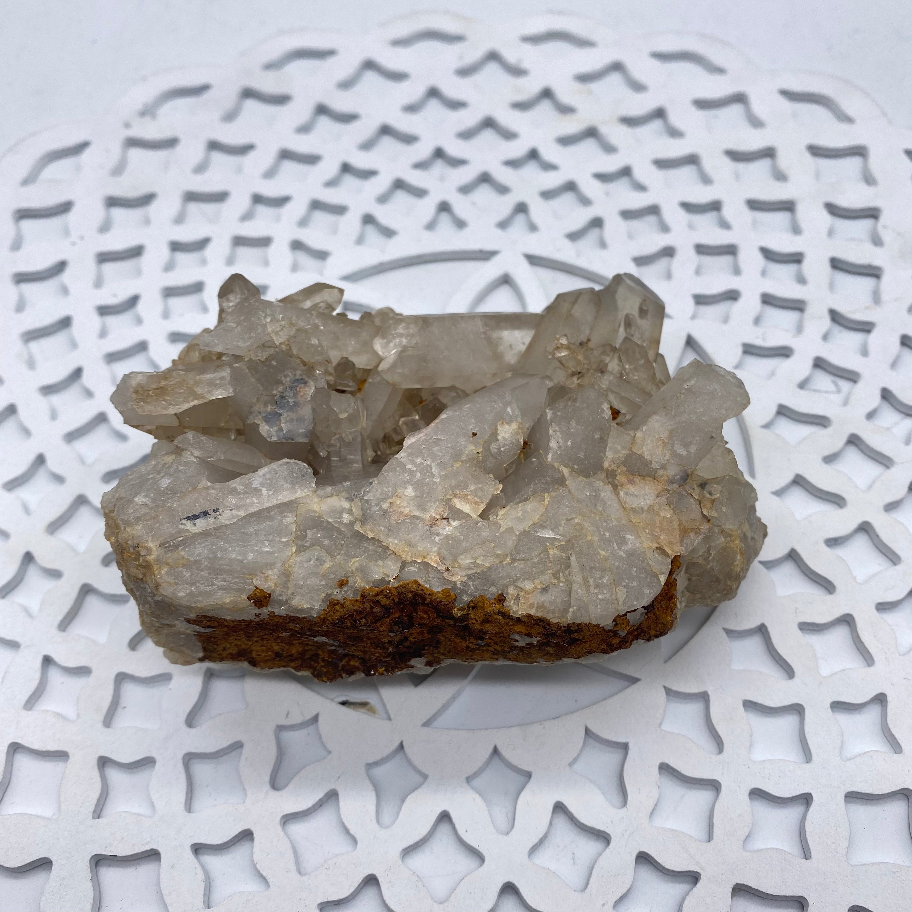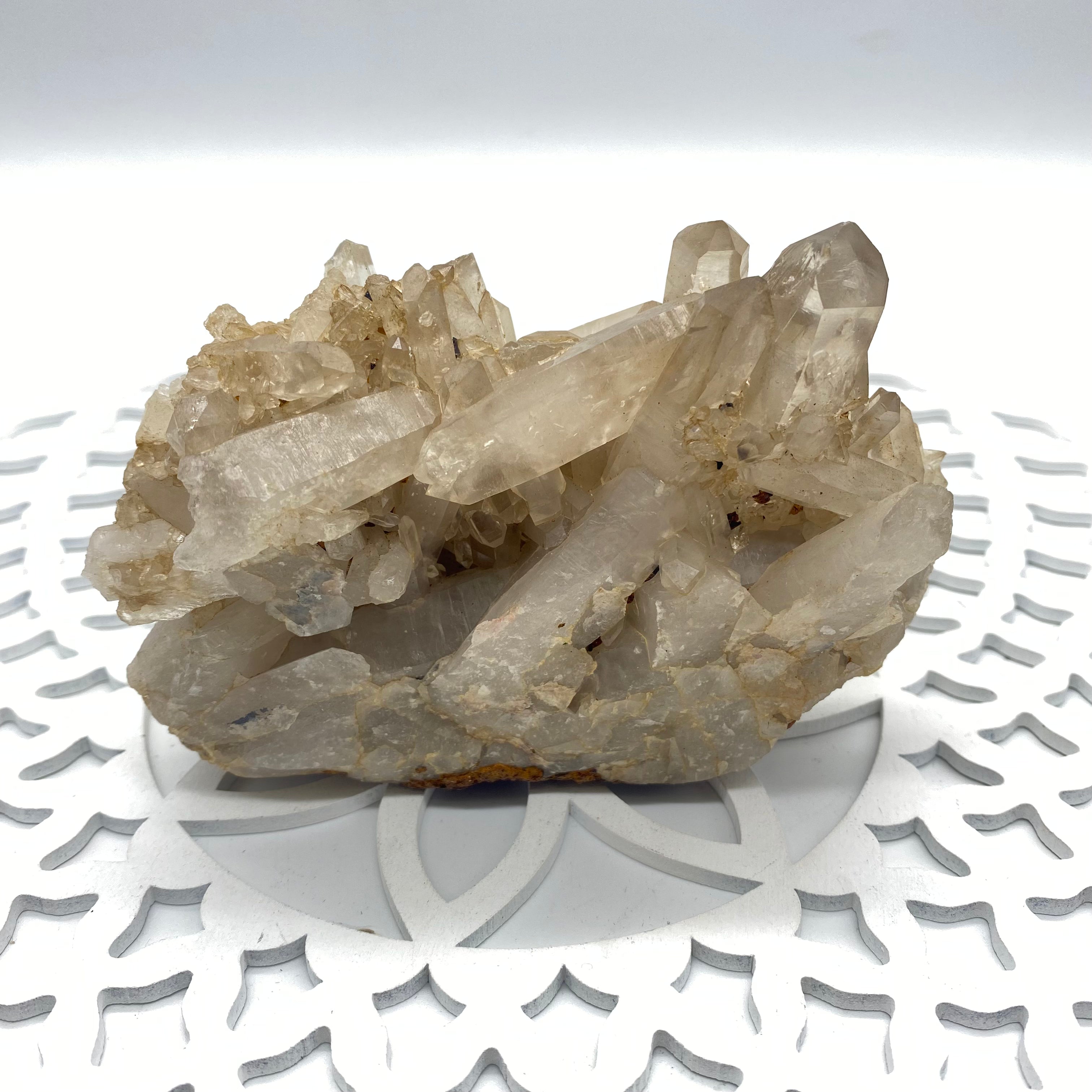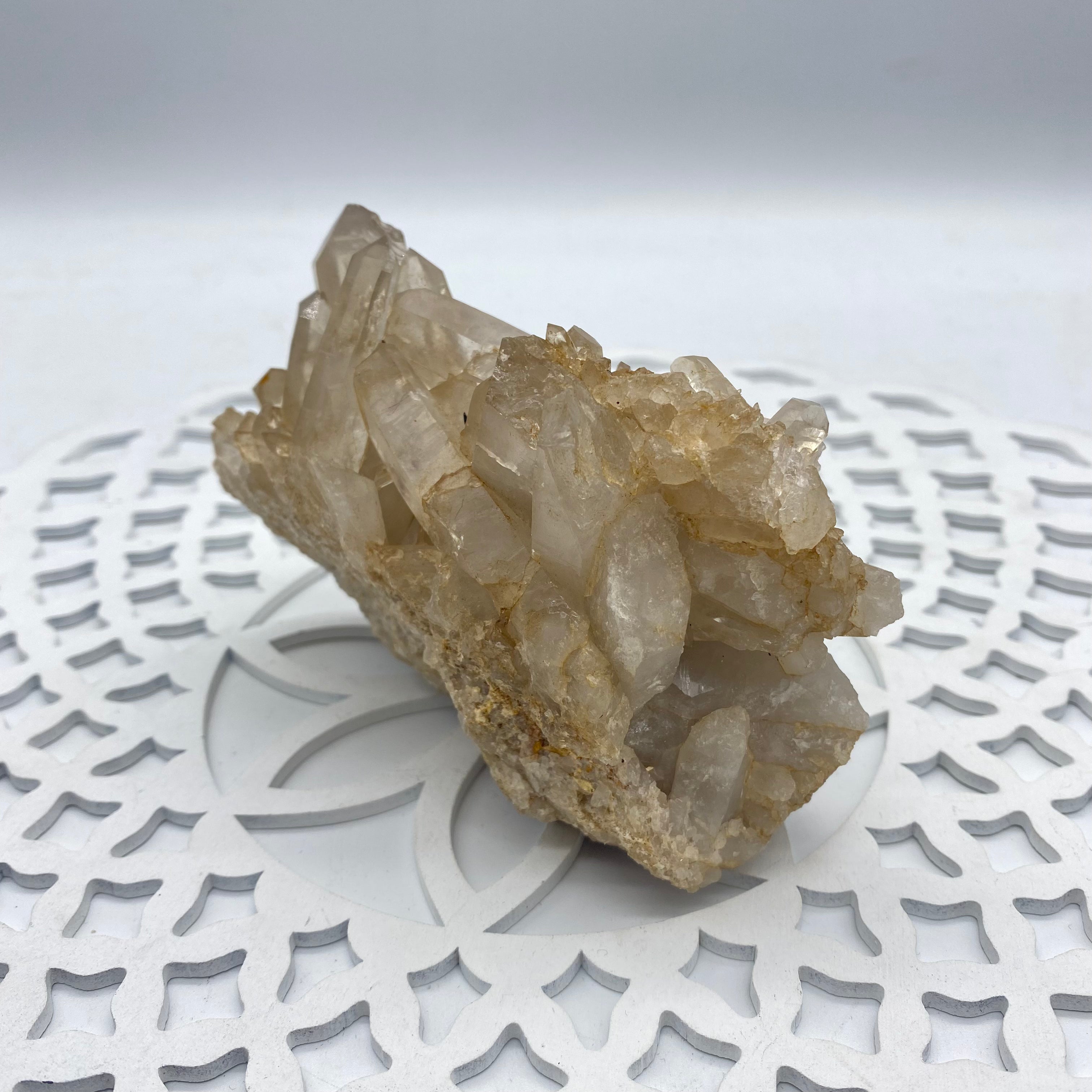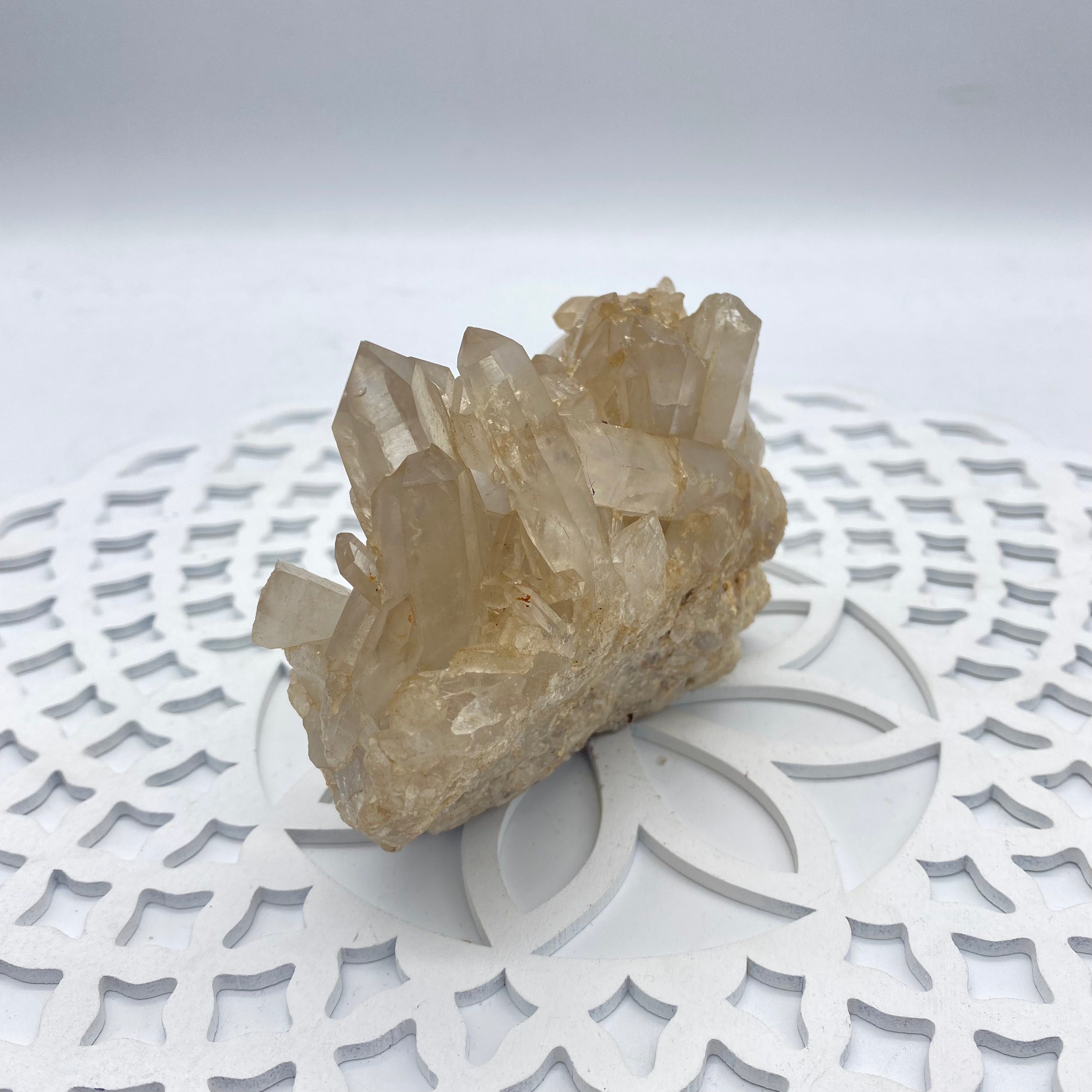 It helps attune you to your spiritual purpose here on planet Earth. It is extremely powerful and can be used as an energy amplifier. Placed in your home it acts as a spiritual air-conditioning unit- Cleansing and energising it's surroundings. You can place your other crystals around clear quartz - and its vibration will work with each and every crystal's energy.