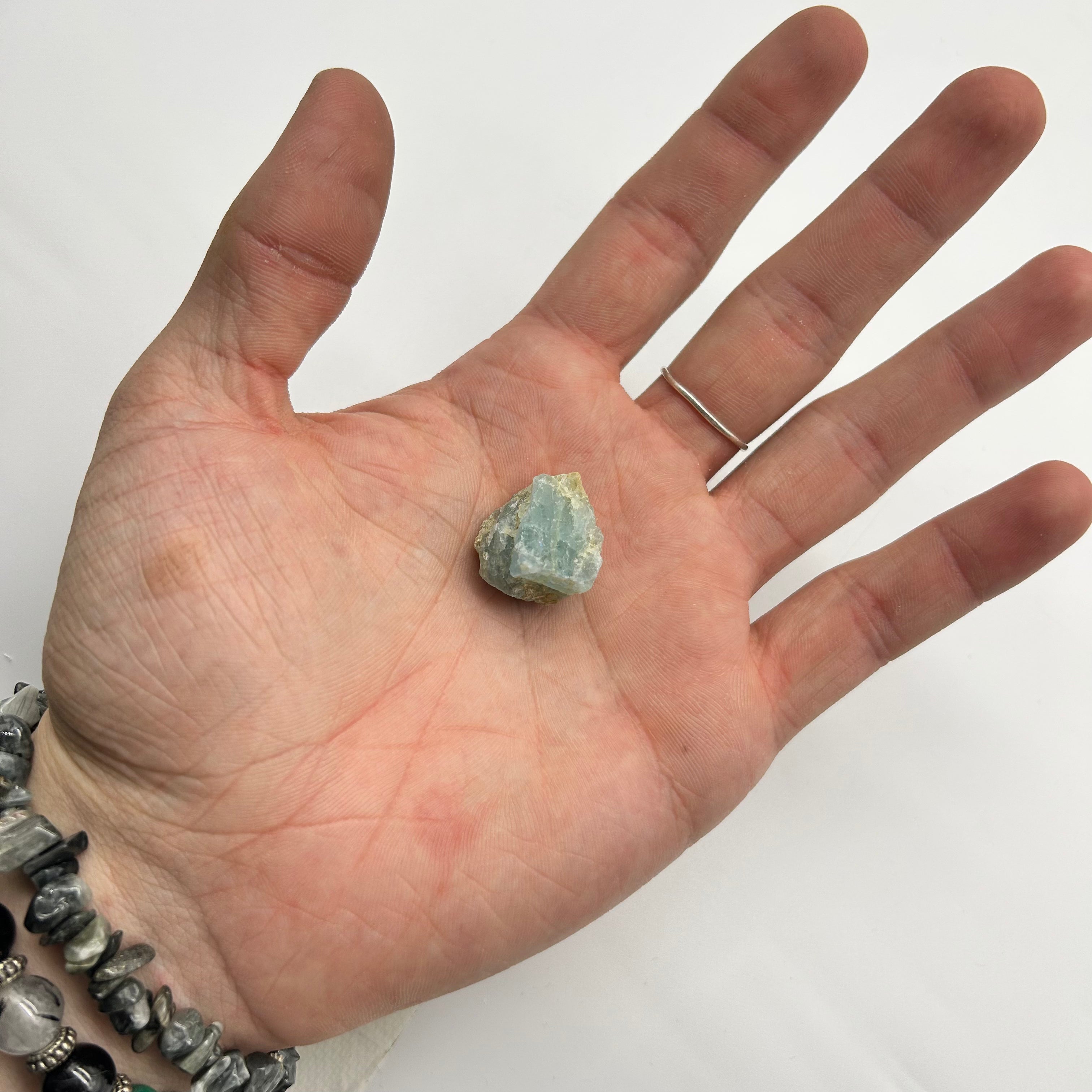 Carry this aquamarine crystal with you during the day. It will counteract the forces of darkness , shield your aura and balance your chakras. Its energy will create a character that is disciplined and dynamic - breaking old self defeating habits.