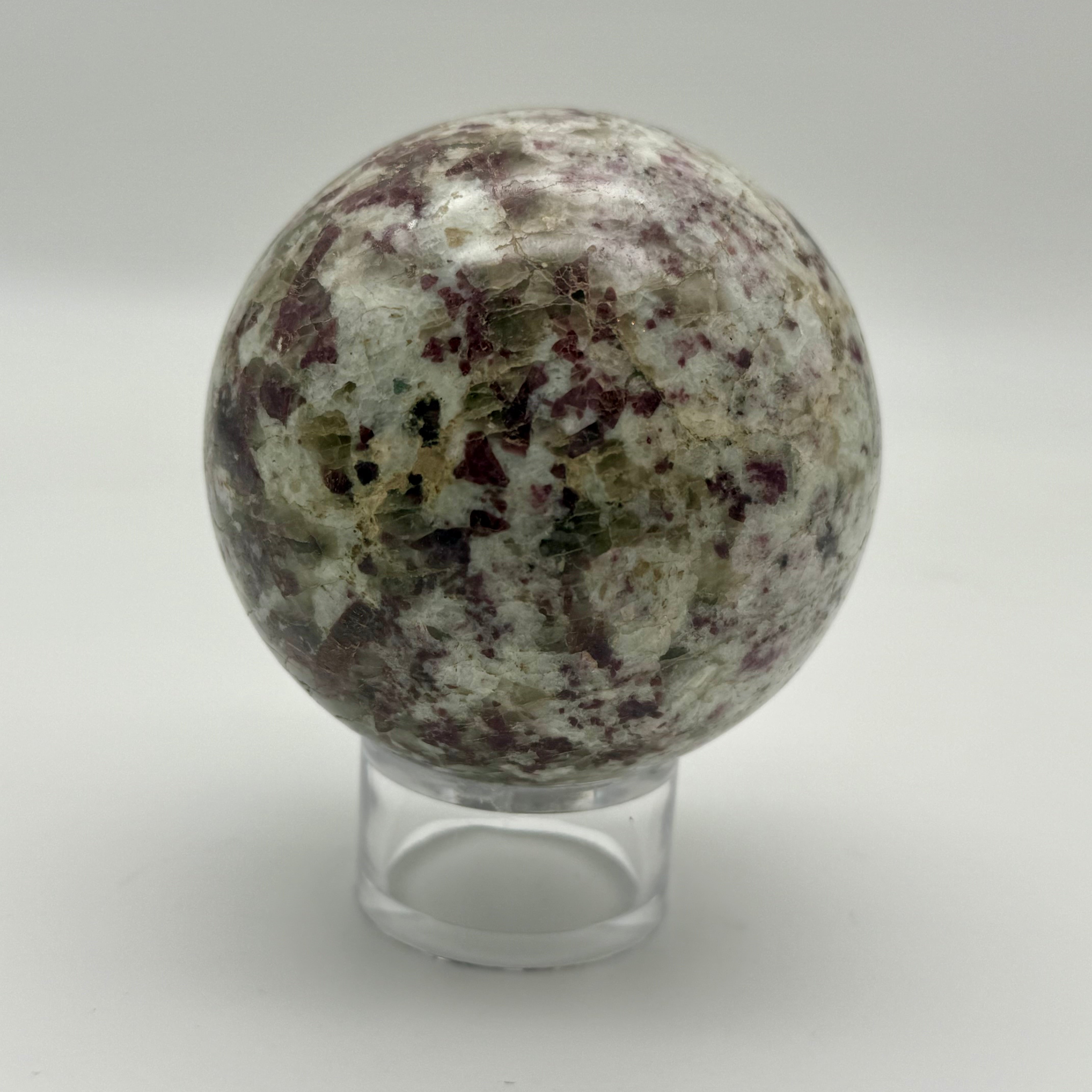 This rare crystal comes from Madagascar . Pink tourmaline supports emotional healing and the activation of the heart chakra . When communicating with special people and those you share a personal relationship with - hold this crystal to communicate your words from the heart. Due to its high lithium content it is a powerful healing stone that calms the emotions and the physical body. If you find youself - or the other becoming overwhelmed with the process of a heartfelt conversation - pass the pink tourmaline sphere between each other - so you can communicate in a calm manner - awakening and working with the true essence of self. This crystal assists in changing worn out behaviour patterns - and shifting these patterns to reflect a higher approach to relationships and communication. It helps one find strength in vulnerability and opens the self to feel joy in all ones learning experiences.