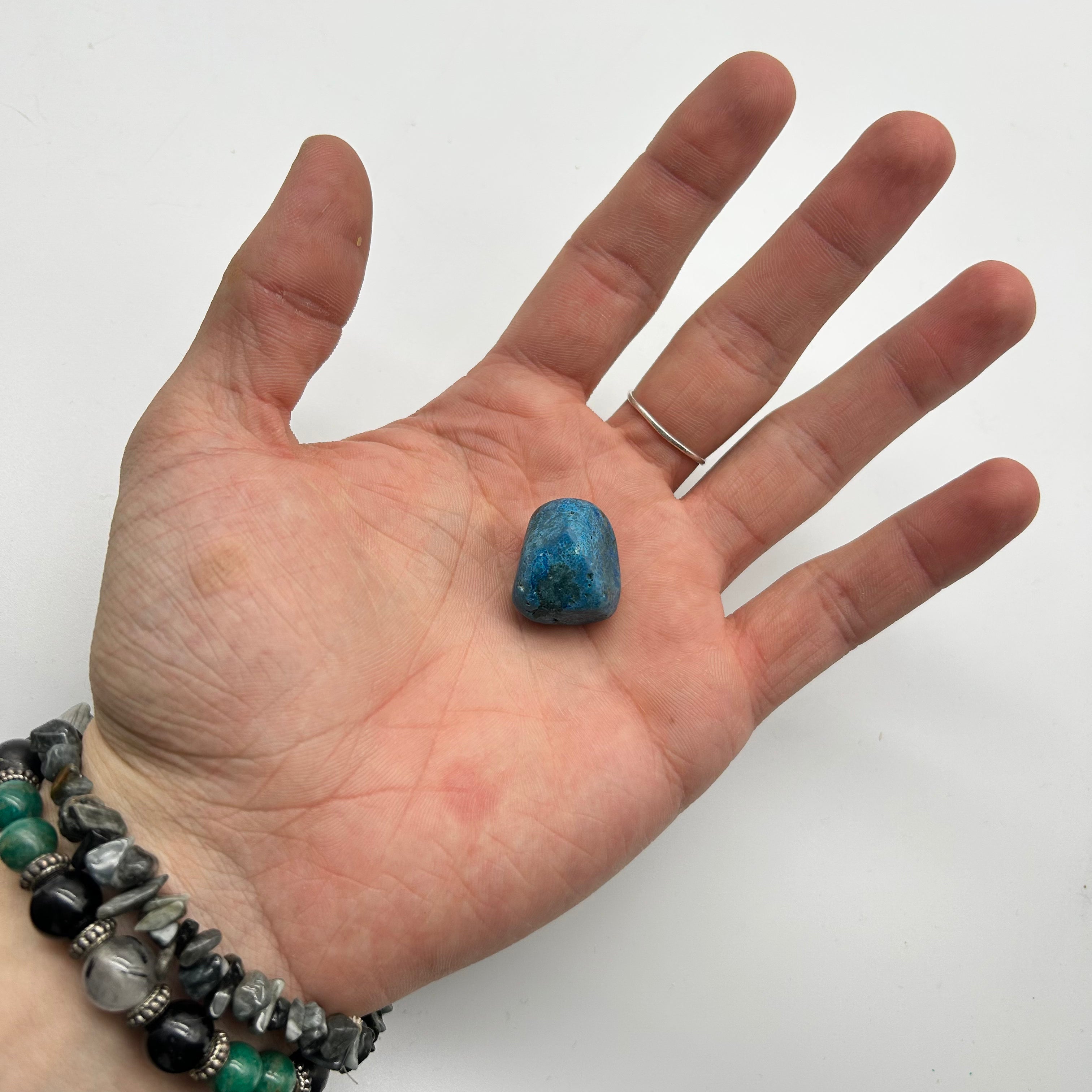 Plancheite is a stone of courage. It gives strength in times of stress and difficulty, boosting your confidence and raising vibrations. This gemstone protects from negativity, both energy and influence, so that you remain focused and unswayed on the path to your goals. It keeps you centered, working to increase your persistence and stave off all that can sway you in directions that do not serve your ambitions.