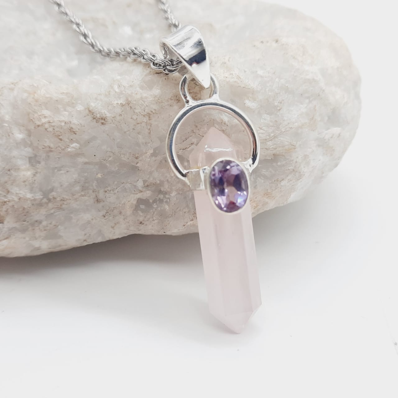 Rose Quartz & Faceted Amethyst Double Sterling Silver Terminated Crystal Pendant