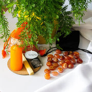 Carnelian represents the element of fire. A carnelian crystal activates the root, sacral or creative chakra, and the solar plexus. Casting your carnelian runes will ignite creative energy and assertive will. You will be guided and focused on your questions at hand. Carnelian is a powerful ally to call upon when taking significant action. This divination rune set will support you In questions about relationships, be they romantic or business ones - it will keep you focused - and encourage you to move forward. Remember to journal each reading so that you can decipher the hidden messages.
