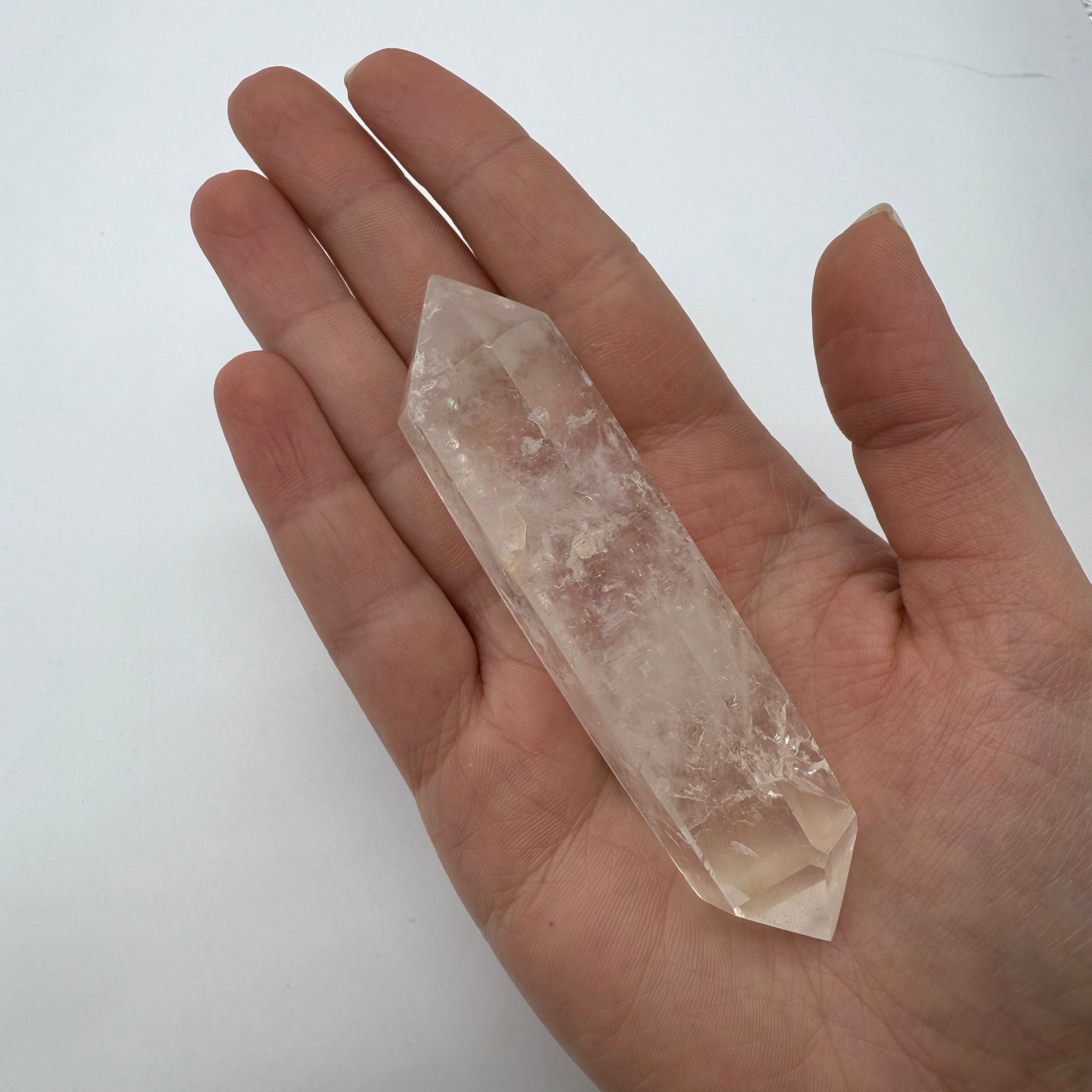When held above the body - where energy is blocked the double terminated crystal will clear and dissolve stagnant energy .held above the crown or third eye the double terminated quartz will expand one’s consciousness and blend the physical with the metaphysical.