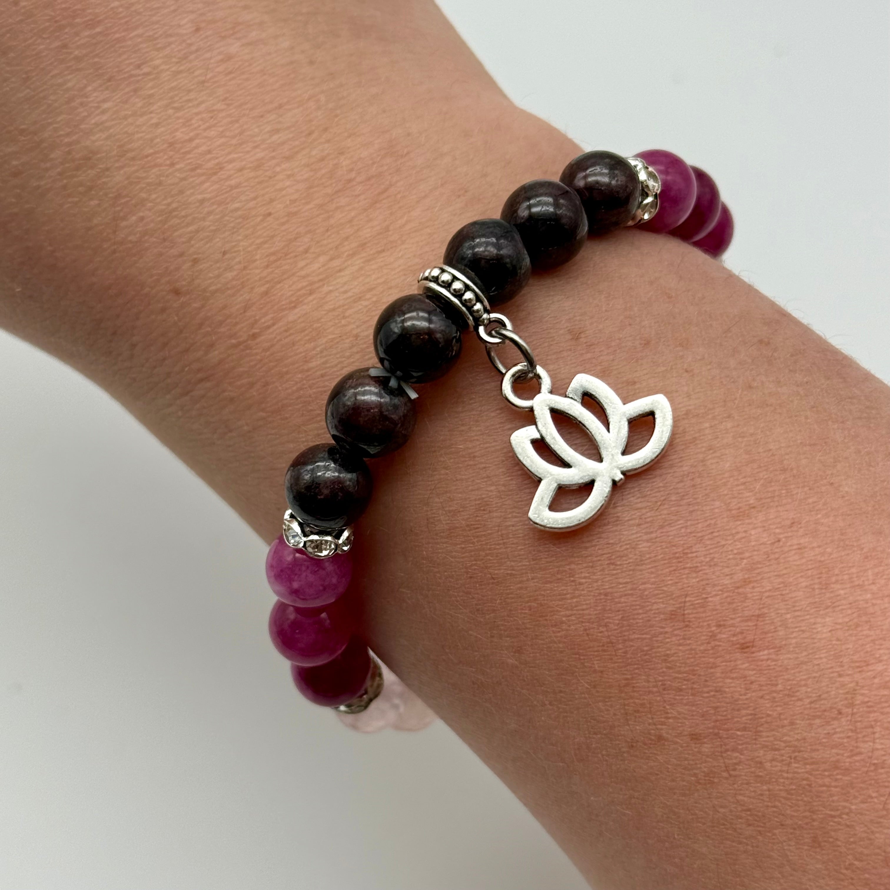 This bracelet is perfect for those who need to activate the confidence button and open their hearts to love. Its all about self awareness and self empowerment. Garnet encourages one to both give and receive love. Garnet encourages the expression of love between two people. It lifts feelings of inadequacy and unworthiness that might block your ability to receive love. It helps release feelings of jealousy as it stimulates owning ones gifts and encourages one to recover ones sense of self worth Rose quartz activates your heart chakra, teaching you to love yourself and to make space for sacred time. It helps open your heart to love once more. Rose quartz bathes you in pink light that shifts you into personal self belief and love. The infused cherry quartz amplifies feelings of happiness.