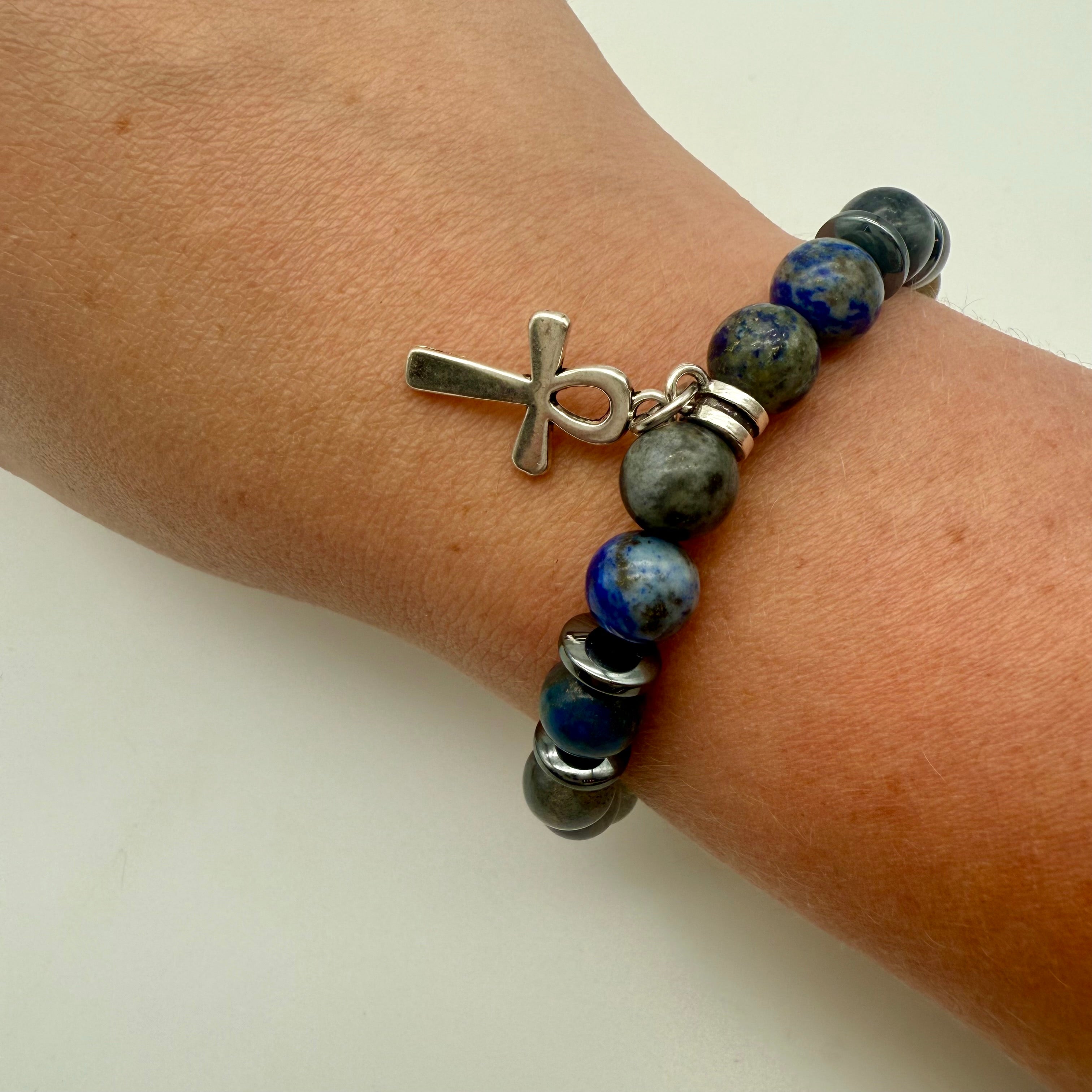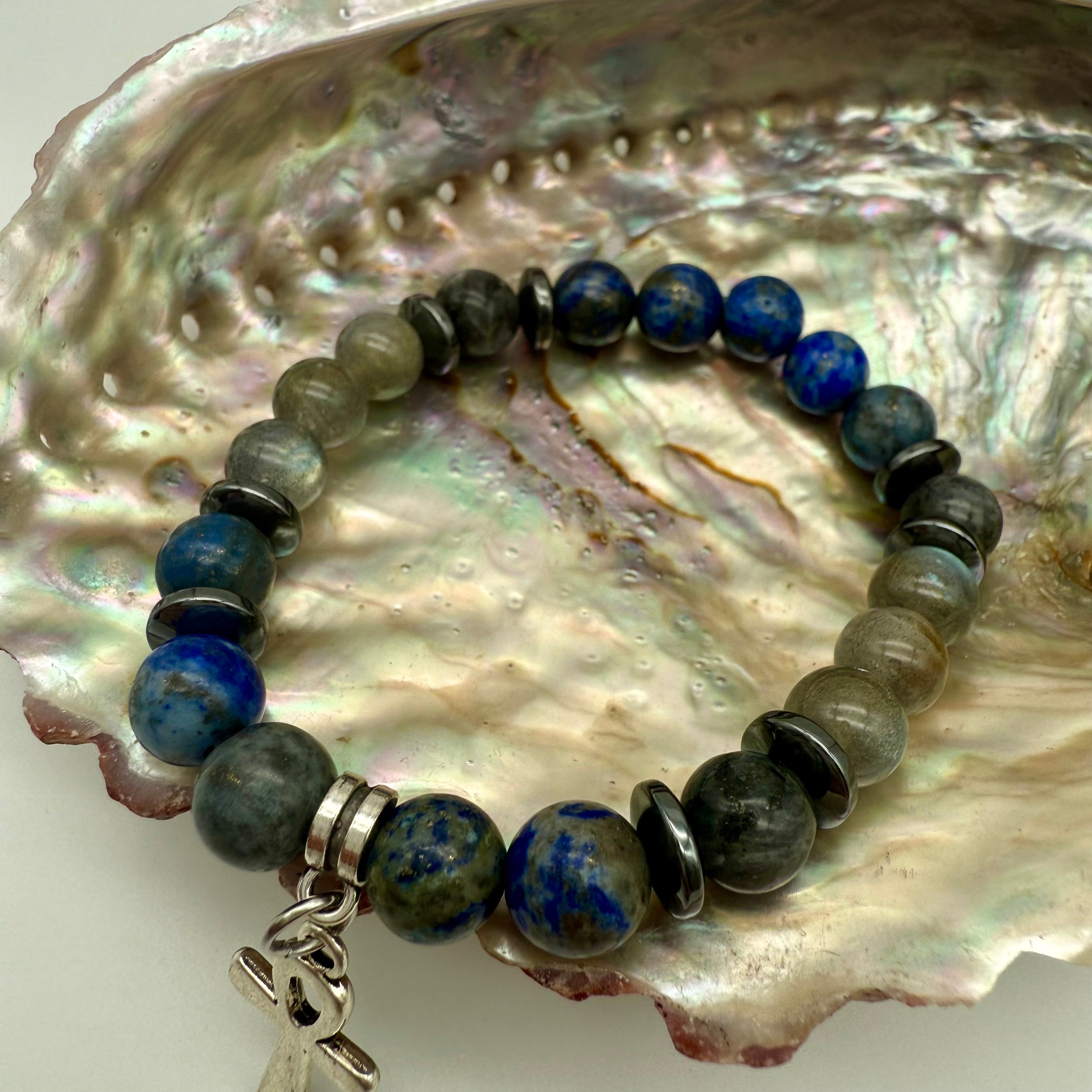 Labradorite, lapis lazuli, black labradorite, hematite rondel