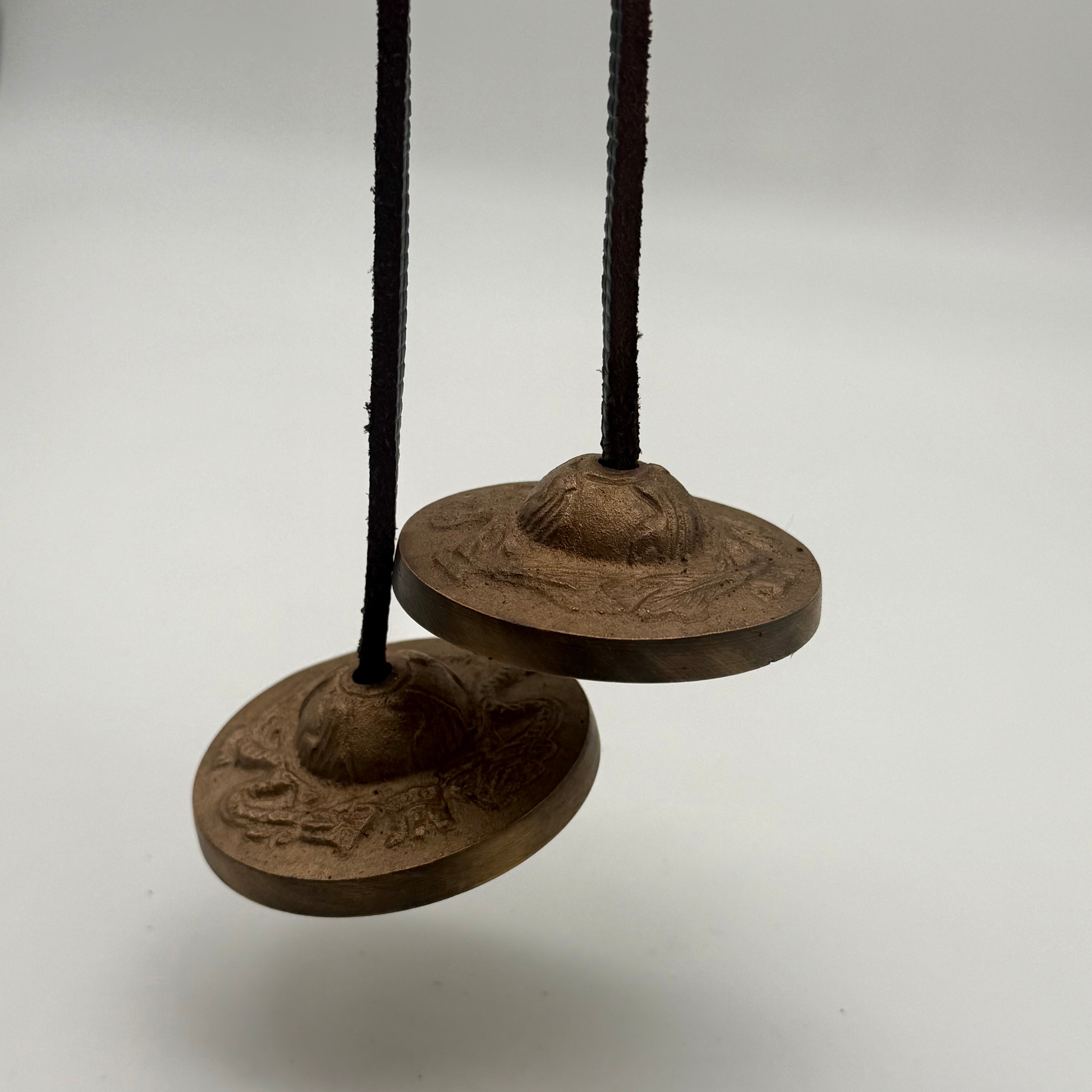 Tibetan Tingsha is an instrument where two small cymbals are joined together with a leather strap. It is also used to prepare for healing, space cleansing, meditation and sound therapy treatment. When the cymbals are struck together, they produce a pure, clear and soothing sound that instantly strike an echo within the heart. It heals and cleanse the energy in the area filled with the sound of it. This rich sound awakens one awareness, calls ones to remember who one is, and to recognise one's priorities in life. It can also be used to focus one's mind before and after meditation.