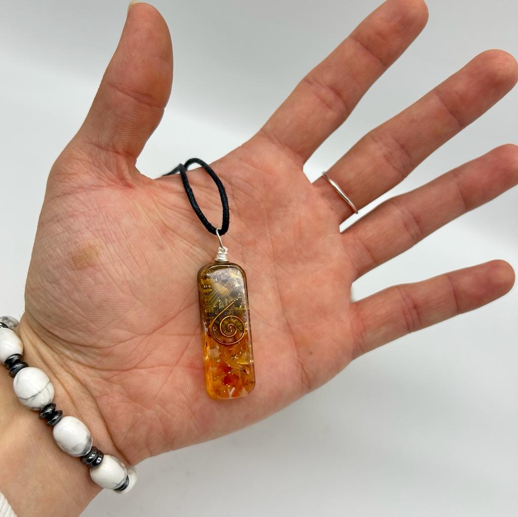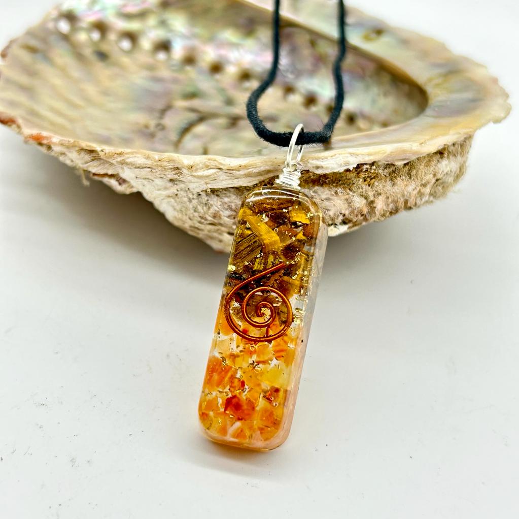Tigers Eye and Carnelian Orgonite Pendant for Fierce Wealth Energy