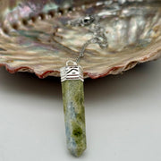 Vesuvianite Crystal Pencil Point white metal pendant from India - sexual energy and emotional connection .